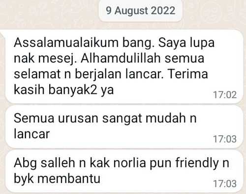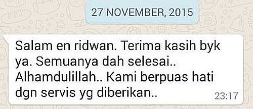 Sejak tahun 2010, masa kami mula beroperasi, dah banyak mesej yang kami terima dari pasangan yang berpuas hati dengan khidmat kami. Berikut adalah beberapa contoh dari lebih seratus ucapan terima kasih yang kami terima:
